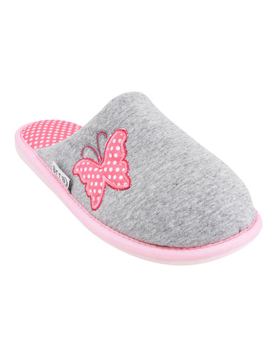 Pantuflas de dama Arra gris con mariposa rosa