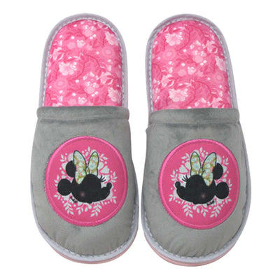 Pantufla Minnie Mouse para dama color gris y rosa